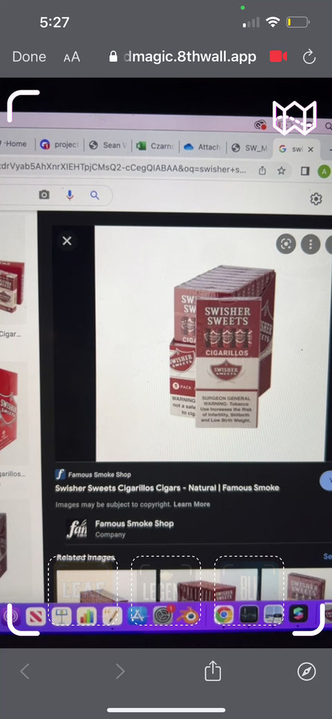 While working at Standard Magic we acquired Swisher Sweets as a client. They hired us to create an effect for an event they were presenting at that would drive traffic to their social media. I used a software called 8th Wall to create an AR tattoo that would allow users to apply a temporary tattoo to their skin, scan it with their phone, and see the tattoo transform. The tattoo design was based off of their logo, so the effect was usable on all of their products.